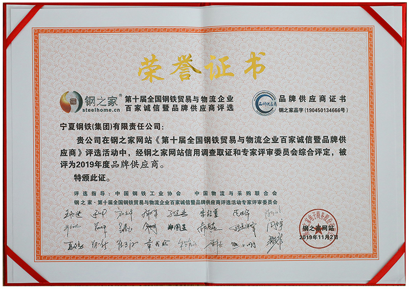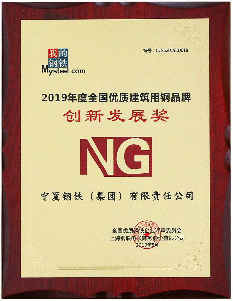 2019年度全國優(yōu)質(zhì)建筑用鋼品牌·創(chuàng)新發(fā)展獎