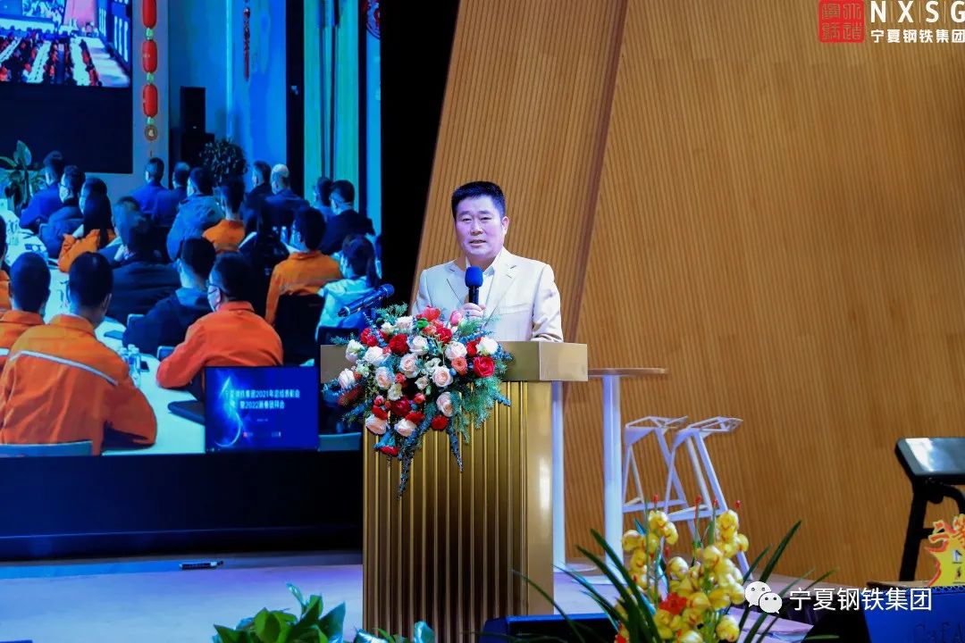 寧夏鋼鐵集團輪值總經理張廼軍宣布2021年表彰決定。