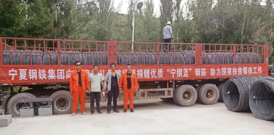 該批鋼筋8月6月從寧夏鋼鐵集團(tuán)庫房出發(fā),于8月7日到達(dá)甘肅省禮縣灘坪鎮(zhèn),現(xiàn)場工作人員直接將鋼筋卸到施工現(xiàn)場,并立即開始基礎(chǔ)設(shè)施建設(shè)。寧鋼產(chǎn)品以其優(yōu)質(zhì)、潔凈、耐銹一度被親切的成為“寧鋼藍(lán)”,同時(shí)庫房到工地的一站式服務(wù)也深得西北市場的青睞。質(zhì)量是企業(yè)的生命,文化則引領(lǐng)寧鋼人踐行對社會(huì)的責(zé)任與擔(dān)當(dāng),多年以來,寧夏鋼鐵集團(tuán)參與公益事業(yè)救助人員347人,救助資金887萬元,在公益的道路上,寧鋼藍(lán)將隨著寧鋼人走的更穩(wěn)更遠(yuǎn)!
