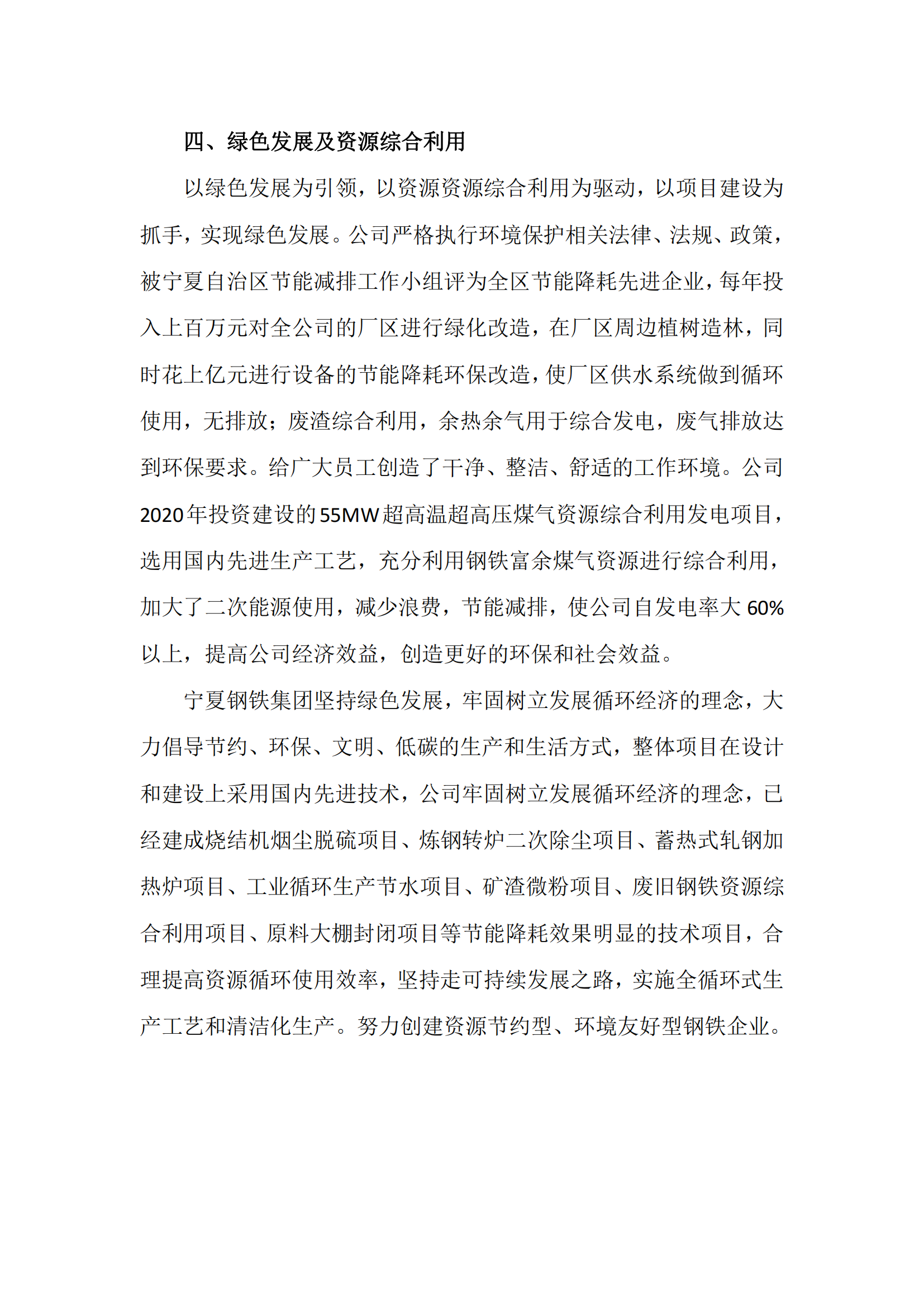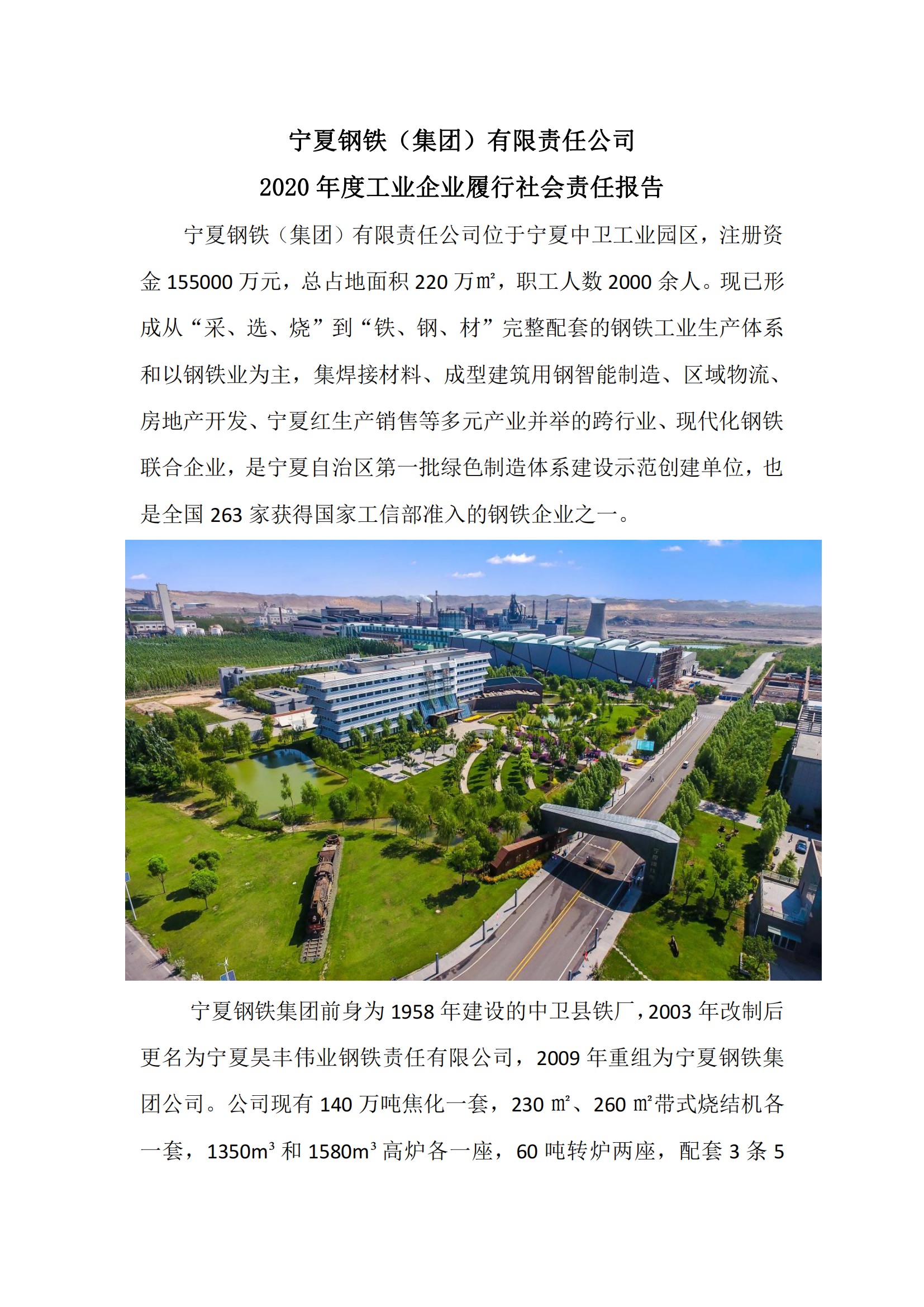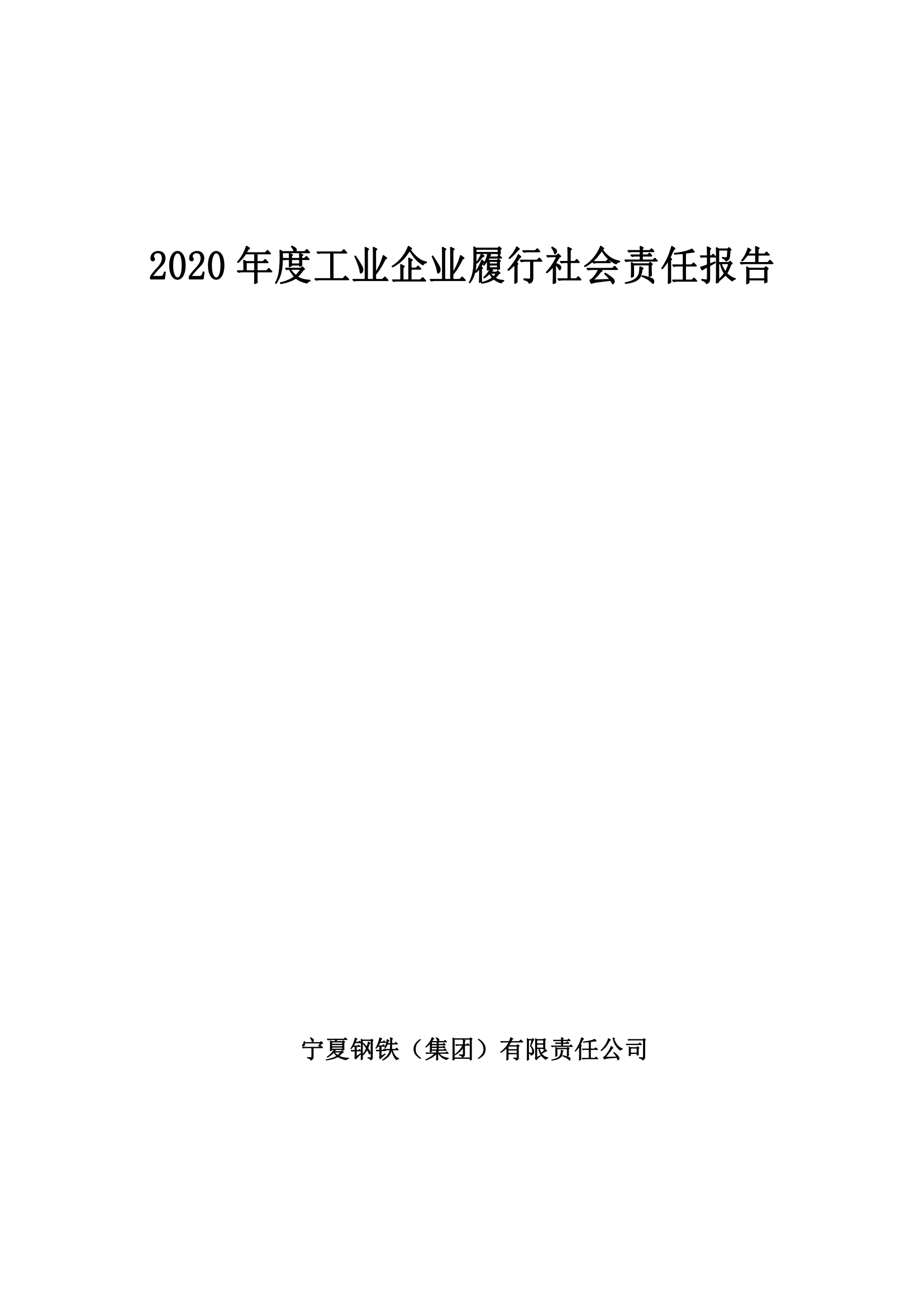 寧夏鋼鐵(集團)有限責任公司2020年度工業企業履行社會責任報告