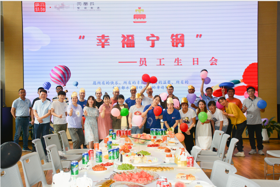 為感謝員工的辛勤付出和努力,豐富員工精神文化生活,增強員工歸屬感,深切感受公司大家庭的溫暖。6月30日下午寧夏鳳凰城智能制造有限公司迎來了首屆“幸福寧鋼”員工生日會。隨著現場優美歡快的音樂,26位壽星,歡聚一堂,共享歡樂。